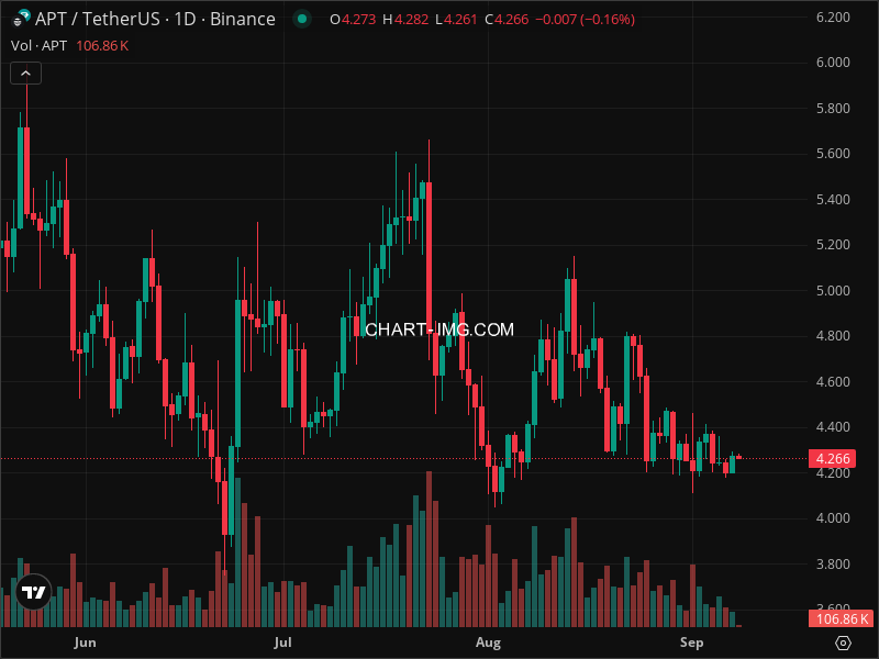 Mini Boletim Aptos (#APT) Aptos (#APT) 💵 Mkt Cap: 2940774740 📊 Preço: 4.27 📈 Máx 24h: 4.29 📉 Mín 24h: 4.21 💵 Vol 24h: 318496205 📊 Var 24h: 0.0642 No gráfico diário, o APT apresenta uma tendência lateral consolidada. Após uma queda recente, o ativo está buscando apoio em torno de R$ 4,20. O volume […]