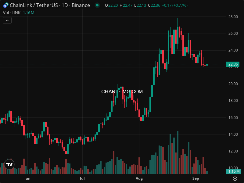 =Chainlink (#LINK) 💵 Mkt Cap: 15186727783 📊 Preço: 22.35 📈 Máx 24h: 22.46 📉 Mín 24h: 21.91 💵 Vol 24h: 501616967 📊 Var 24h: 0.050863 No gráfico diário, o LINK segue uma tendência lateral, oscilando dentro de uma faixa definida. Após testar a resistência em 23,00, voltou a ceder pressão e recuou para suportes recentes […]