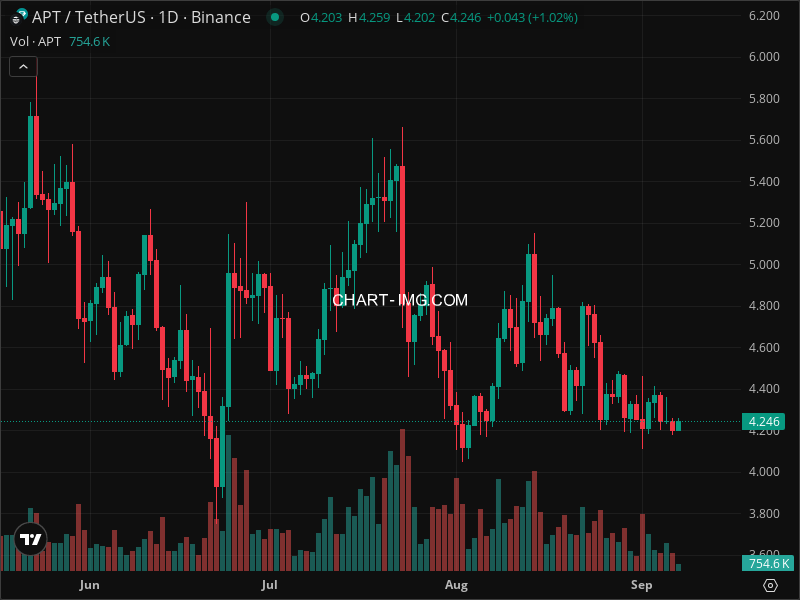 =Aptos (#APT) 💵 Mkt Cap: 2929281398 📊 Preço: 4.25 📈 Máx 24h: 4.26 📉 Mín 24h: 4.18 💵 Vol 24h: 322179598 📊 Var 24h: 0.0338 — No gráfico diário, o APT segue uma tendência lateral consolidada, oscilando dentro de um canal estreito. O preço apresenta baixa volatilidade, mas o volume de negociações está acima de […]