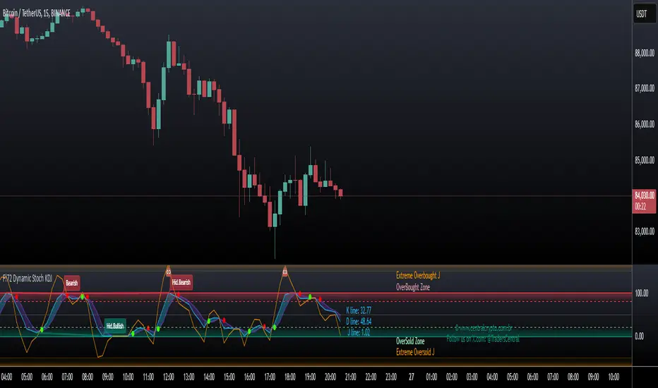 This indicator is an advanced momentum oscillator designed to enhance trend identification, overbought/oversold (OB/OS) zone detection, and volatility analysis. By integrating Stochastic RSI with the KDJ framework, this indicator provides a precise and adaptive